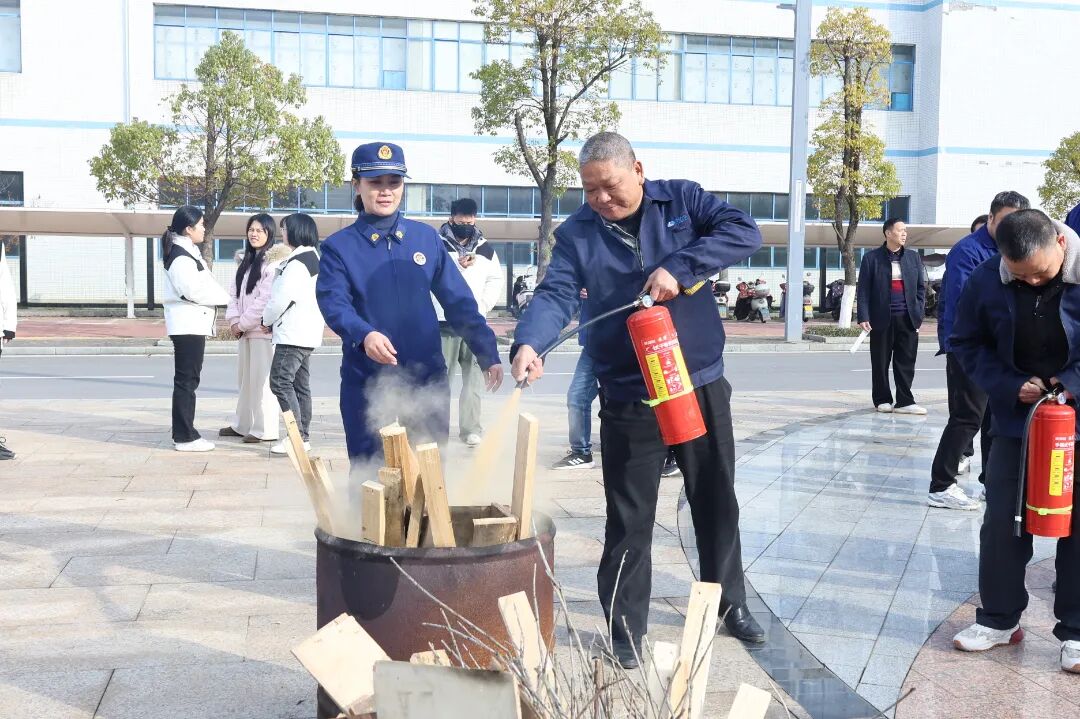 “提拔我呀”,简单的四个字,让大家记住了灭火器的“提、拔、握、压”的使用方法,即提起灭火器、拔掉保险销、握住喷管前端、压下压把,并对准火焰根部进行喷射。讲解清晰明了,让复杂的操作变得简单易学。在消防队员的指导下,物业安保及园区企业代表纷纷上前,轮流操作灭火器对模拟着火点进行扑灭。大家克服紧张情绪,按照规范步骤大胆操作。
