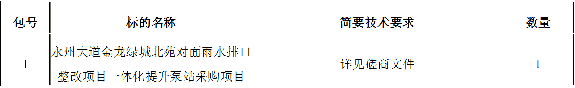 采购项目名称:永州大道金龙绿城北苑对面雨水排口整改项目一体化提升泵站采购项目
