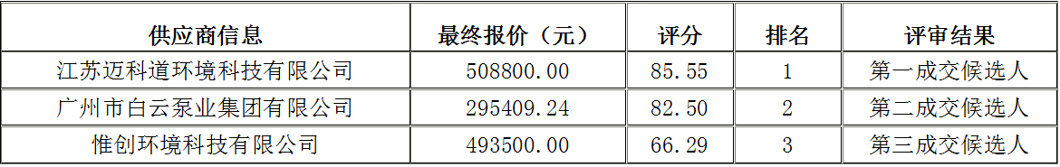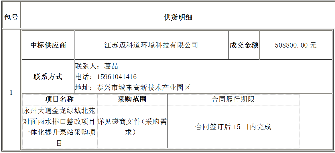 永州大道金龙绿城北苑对面雨水排口整改项目一体化提升泵站采购项目于2026年03月23日结束,现将中标(成交)结果公告如下: