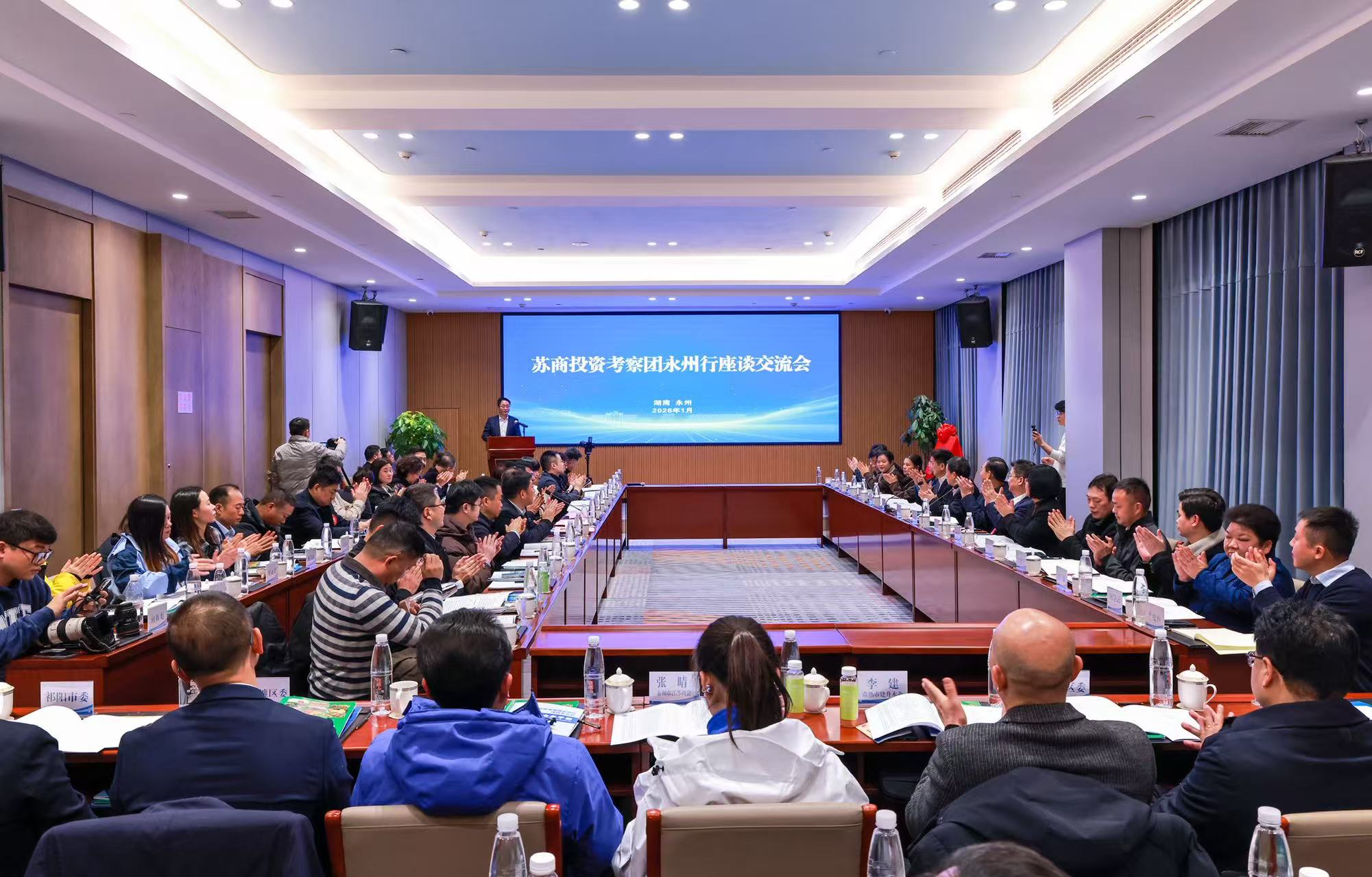 座谈交流会上,朱洪武、俞文勤为苏商产业园揭牌,15家江苏企业负责人作了交流发言,永州市人民政府与江苏省苏商发展促进会签订了战略合作框架协议。根据协议,双方将在苏商产业园建设、经贸往来、产业互补等方面加强合作。