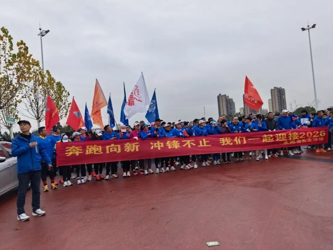 潇湘兴业干部职工齐聚于此,在“永冲锋”湘超冠军队和“永跑者”公益跑团的带领下,参加了“奔跑向新,冲锋不止”2026迎新跑活动,用脚步提升城市的温度,以热情奔跑开启新年新篇章。