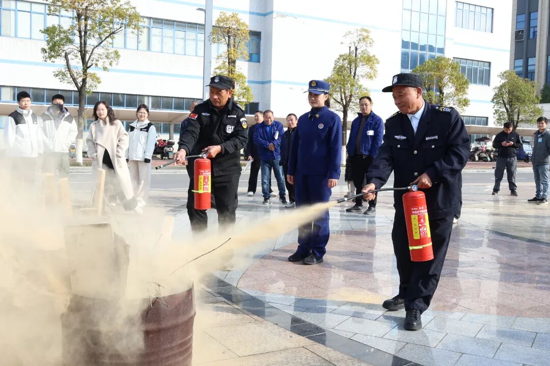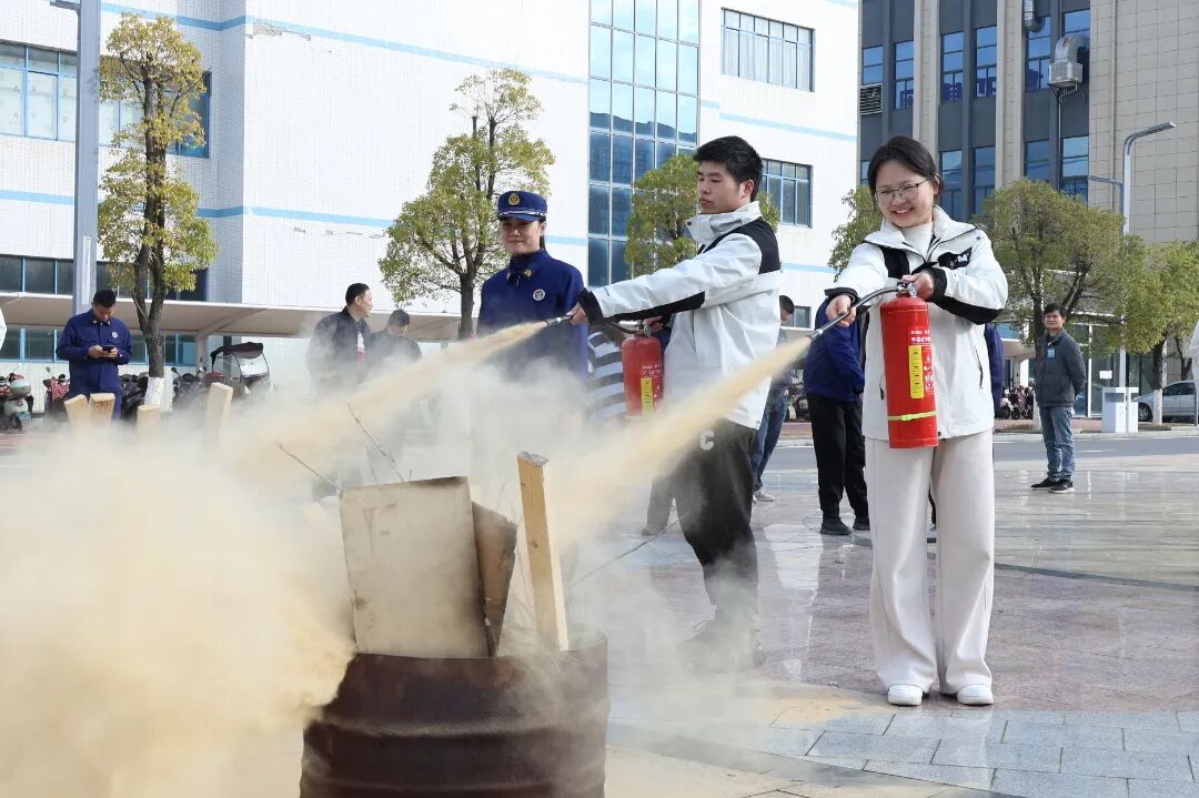 “提拔我呀”,简单的四个字,让大家记住了灭火器的“提、拔、握、压”的使用方法,即提起灭火器、拔掉保险销、握住喷管前端、压下压把,并对准火焰根部进行喷射。讲解清晰明了,让复杂的操作变得简单易学。在消防队员的指导下,物业安保及园区企业代表纷纷上前,轮流操作灭火器对模拟着火点进行扑灭。大家克服紧张情绪,按照规范步骤大胆操作。