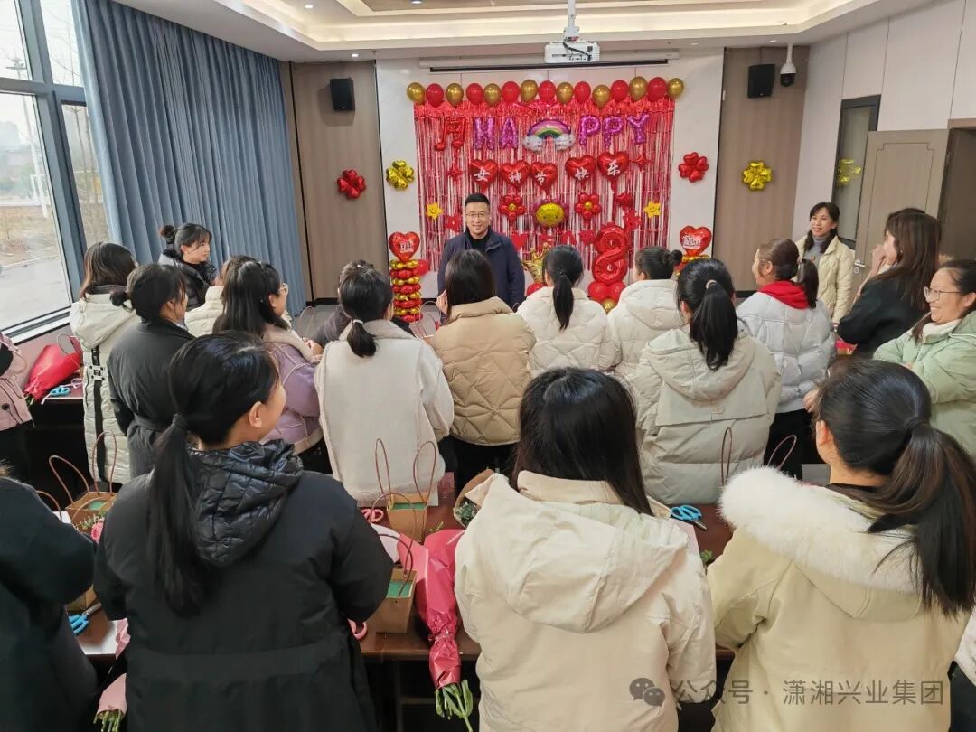 潇湘兴业集团公司三八妇女节插花活动在精心布置的大会议室温馨展开。活动前,小伙伴们以红色、金色气球打造节日氛围墙,“女神节快乐” 字样搭配彩虹、太阳花装饰,两侧 “女王节”、“做美丽女人” 主题气球柱亮眼吸睛,为活动营造出温馨愉悦的氛围。