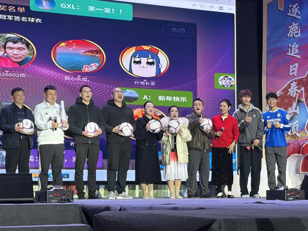 冷水滩区新春团拜会当晚,场馆内星光熠熠,迎来了一群重量级嘉宾!不仅有湘超永州队的足球健儿们,更有《中国新歌声》全国总决赛亚军、天籁歌者郭沁,以及家喻户晓的著名主持人伊一!他们的到来瞬间点燃了全场热情!