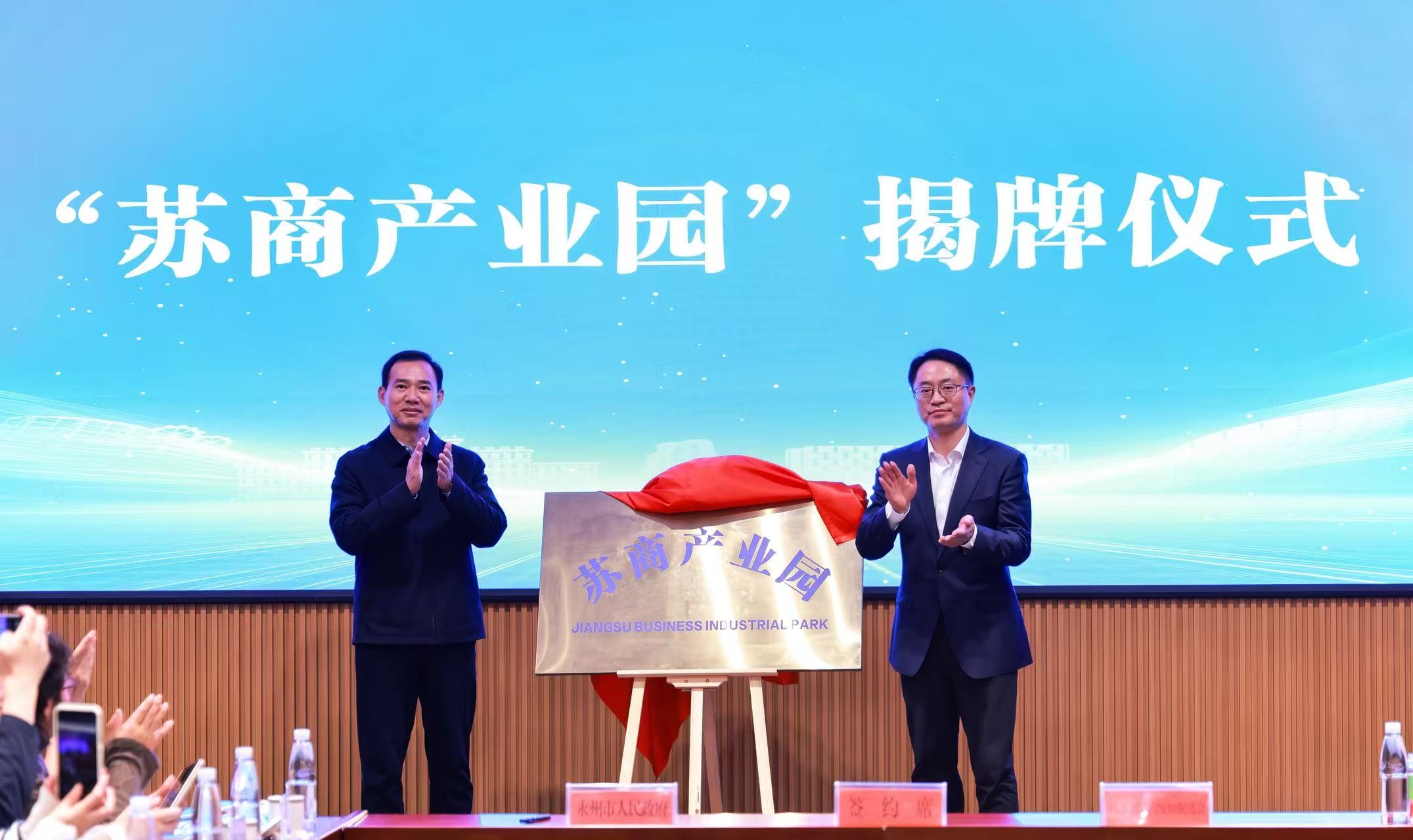 座谈交流会上,朱洪武、俞文勤为苏商产业园揭牌,15家江苏企业负责人作了交流发言,永州市人民政府与江苏省苏商发展促进会签订了战略合作框架协议。根据协议,双方将在苏商产业园建设、经贸往来、产业互补等方面加强合作。